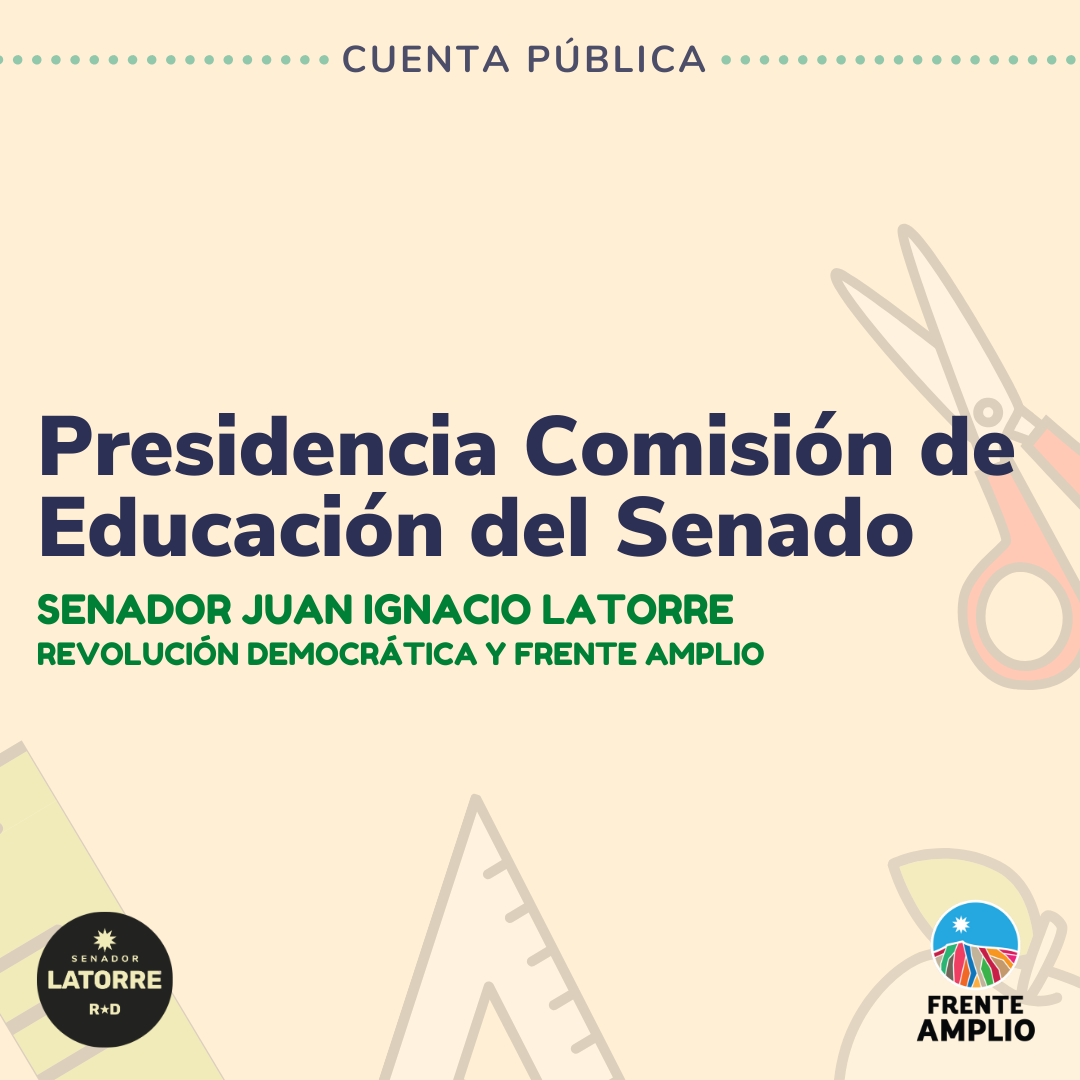 A continuación, un resumen de la gestión del Senador Juan Ignacio Latorre, de Revolución Democrática y el Frente Amplio, como presidente de la Comisión de Educación del Senado durante el periodo marzo de 2019 a marzo de 2020