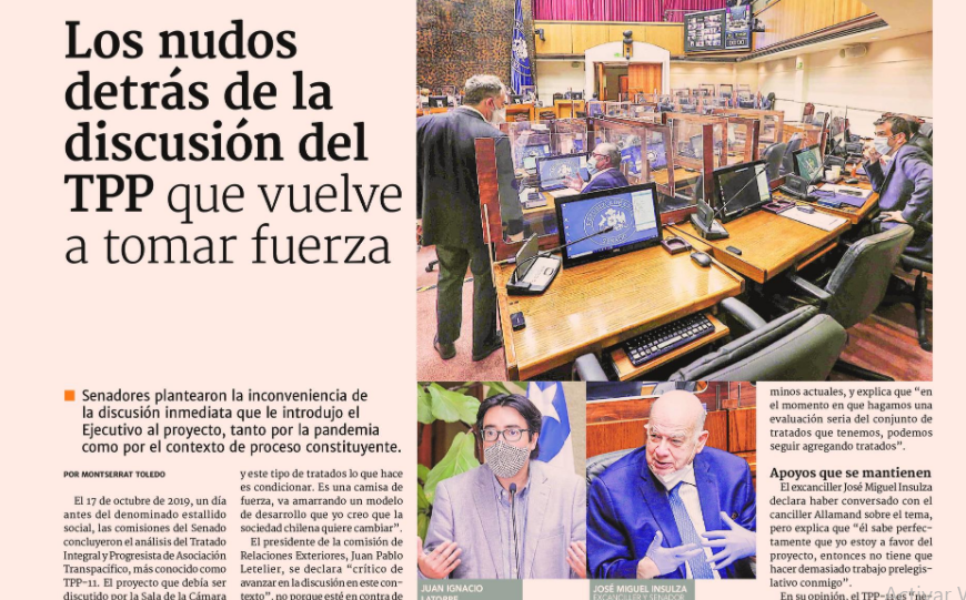 El 17 de octubre de 2019, un día antes del denominado estallido social, las comisiones del Senado concluyeron el análisis del Tratado Integral y Progresista de Asociación Transpacífico, más conocido como TPP-11. El proyecto que debía ser discutido por la Sala de la Cámara Alta estuvo más de un año dormido en el Congreso, y este miércoles por la tarde el Gobierno sorprendió al renovar la urgencia a la iniciativa a ‘discusión inmediata’.