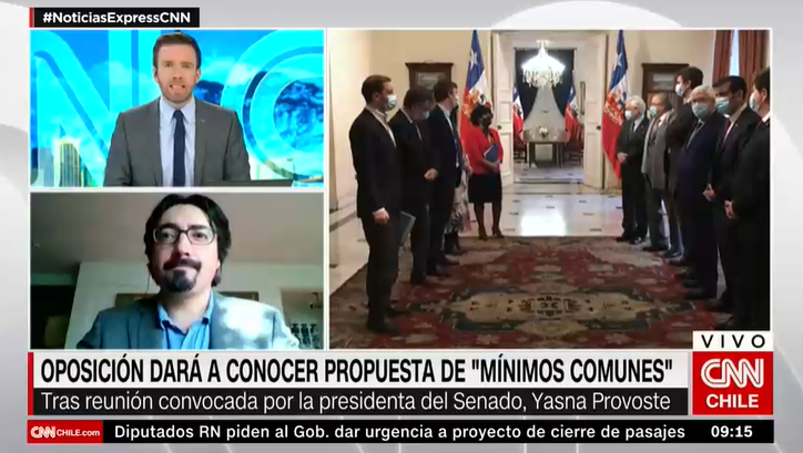 Sobre el cónclave que sostuvieron representantes de la oposición durante el fin de semana, para fijar algunos puntos del acuerdo, el legislador frenteamplista explicó en entrevista con CNN Chile que se tocaron 4 temas: renta básica universal de emergencia, apoyo a las pymes, cambios en las estrategias sanitarias y apoyos al sector de salud, y Derechos Humanos.