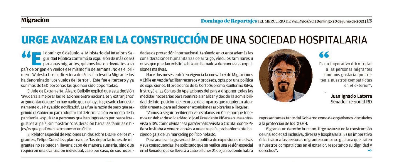 Las resoluciones judiciales que han anulado medidas administrativas de expulsión de migrantes con ingreso irregular al país, repusieron el debate. El subsecretario del Interior, Juan Francisco Galli, dijo que la decisión a tomar es «si vamos a frenar la inmigración clandestina o no». El Mercurio de Valparaíso le pidió a diversas personas del mundo académico, religioso y político que enviáramos una opinión sobre este tema. Les comparto la mía: