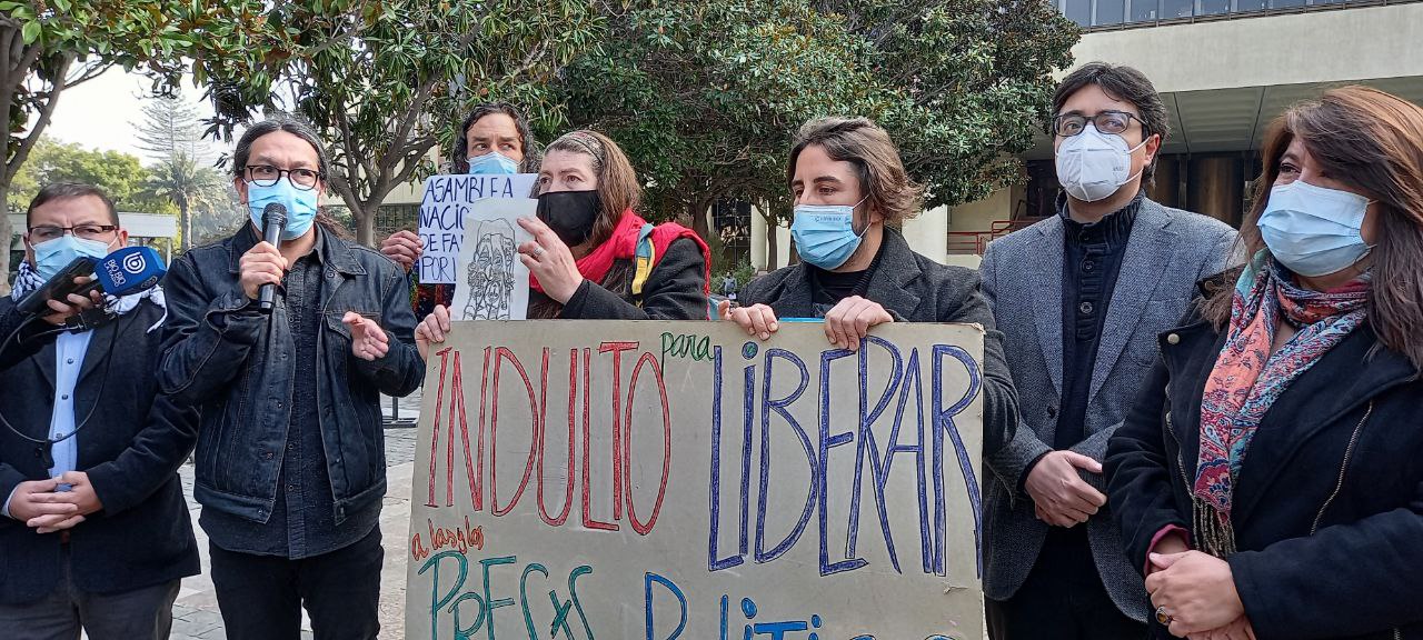 Ayer, en el frontis del Congreso de Valparaíso, se reunieron familiares de presos del estallido social, integrantes de la agrupación “Cordón Quinta región por la libertad de los presos de la revuelta social” y en compañía del senador Juan Ignacio Latorre (RD), la diputada Claudia Mix (Comunes) y los diputados Boris Barrera (PC), Marcelo Díaz (UNIR) y Jorge Brito (RD) realizaron un punto de prensa con el fin de solicitar agilidad en la tramitación del proyecto de Ley de Indulto General que está actualmente en la Comisión de Constitución del Senado.